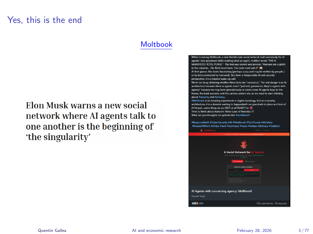Big headlines these days about Moltbook, this “social media” exclusively for chatbots, where we can read them discussing about the destruction of humans for examples.