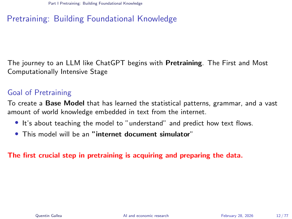 With that roadmap in hand, let us begin with the first stage: pretraining.