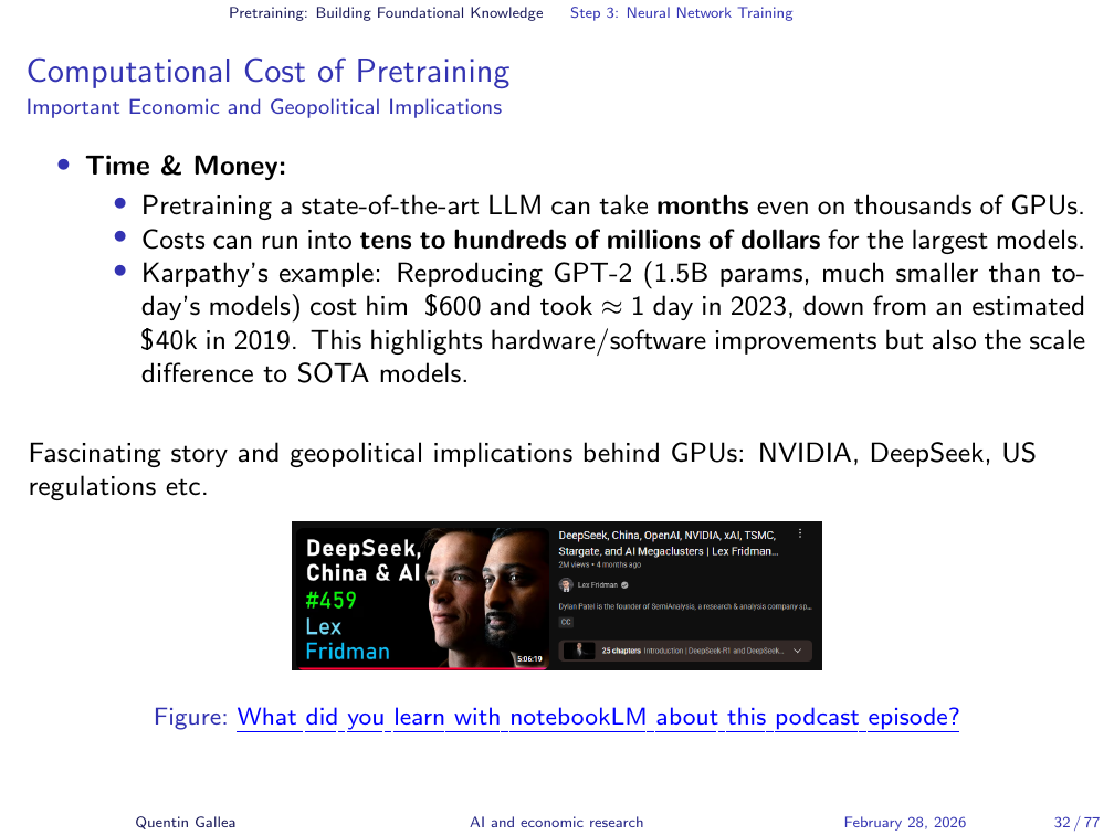 All of this requires enormous computational power. The GPUs — graphical processing units — that make this possible are at the centre of a geopolitical struggle, as discussed in the Nvidia podcast assigned as homework.