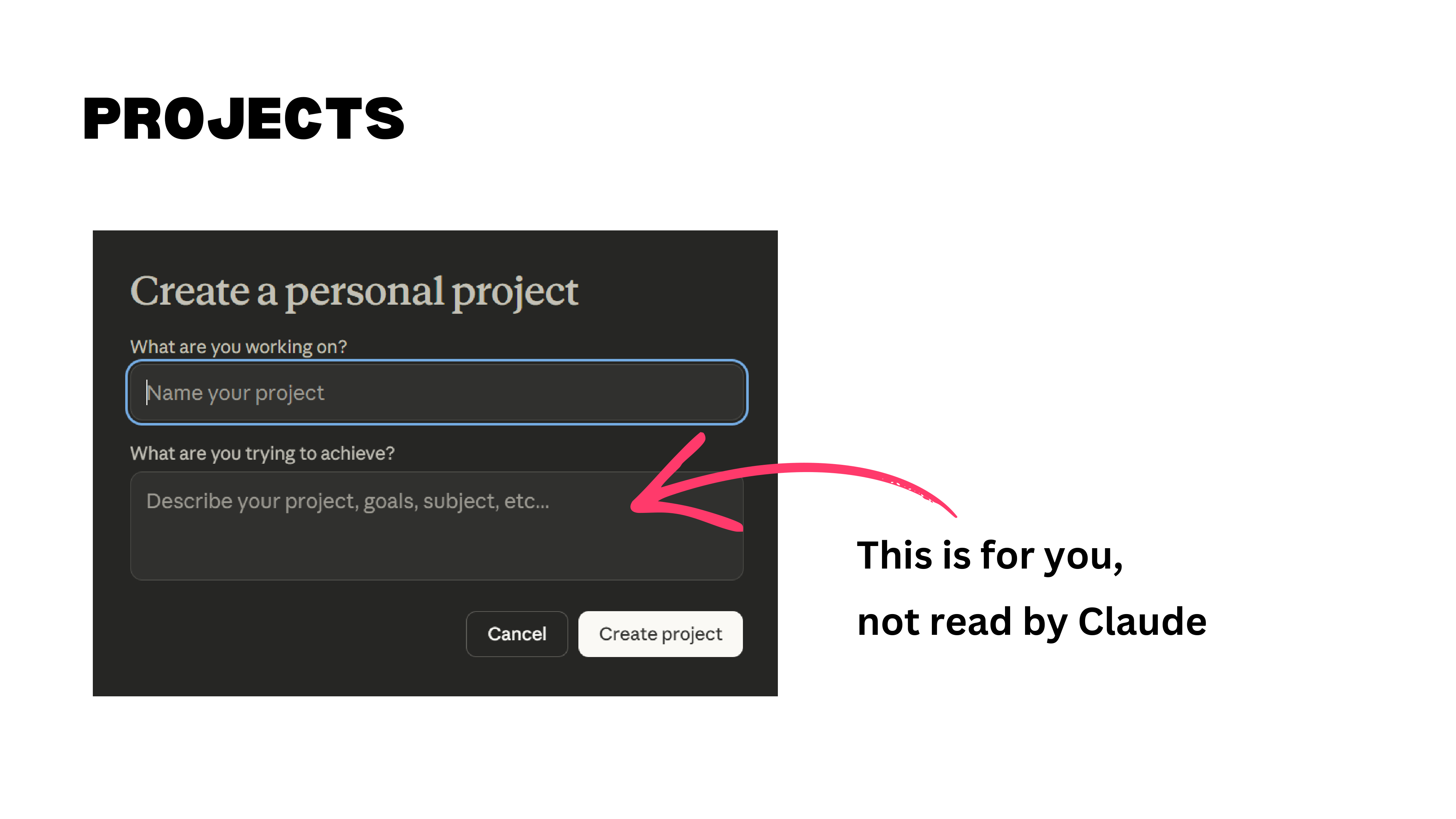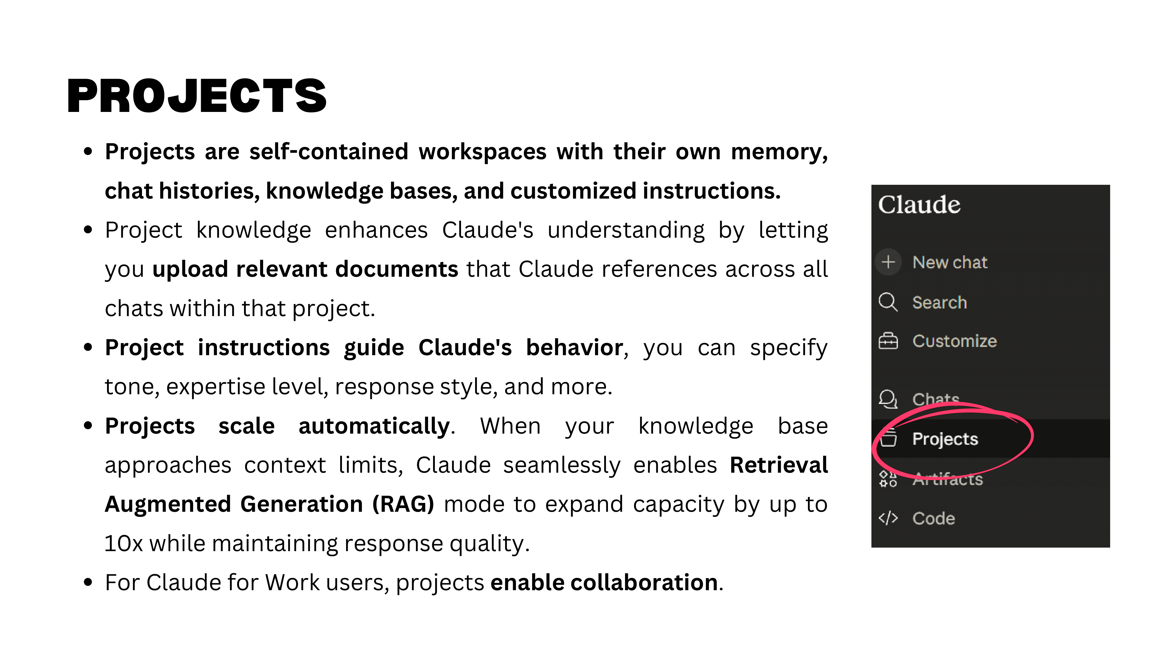 Key insight: Projects let you build a persistent, specialized AI workspace — like having a research assistant who already knows your methods, your references, and your goals.