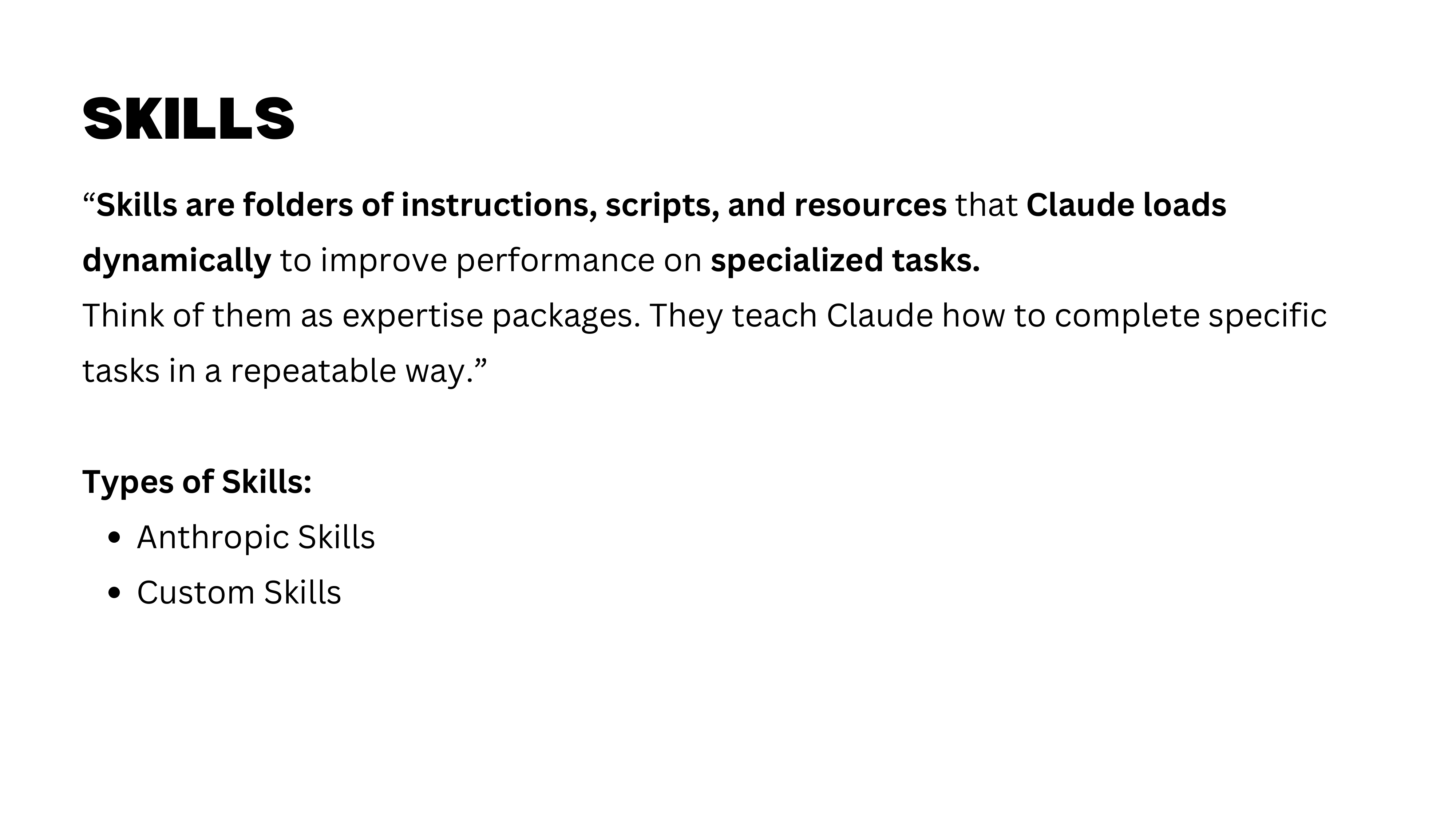 Skills are a major feature that deserves more time than we have today. In short, skills allow you to define reusable capabilities and workflows — the foundation of agent-based work with Claude Code. Your homework is to watch the video “How to Build Claude Code Skills” and explore the Claude 101 tutorial’s section on skills. We will revisit this topic in depth later in the course.