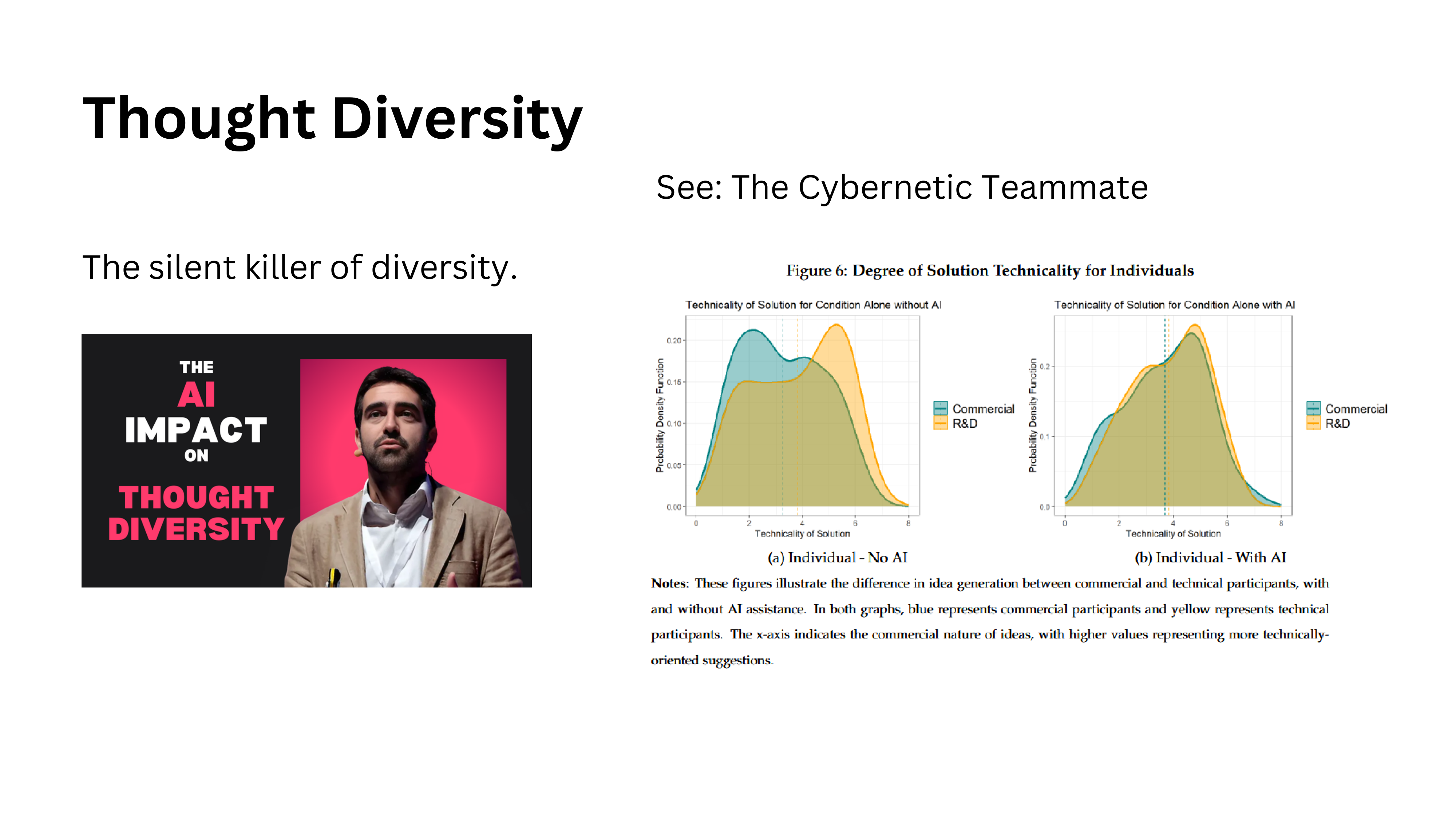 Key insight: If everyone uses the same AI and gets the same answer, we lose the diversity of thought that drives innovation and breakthroughs.