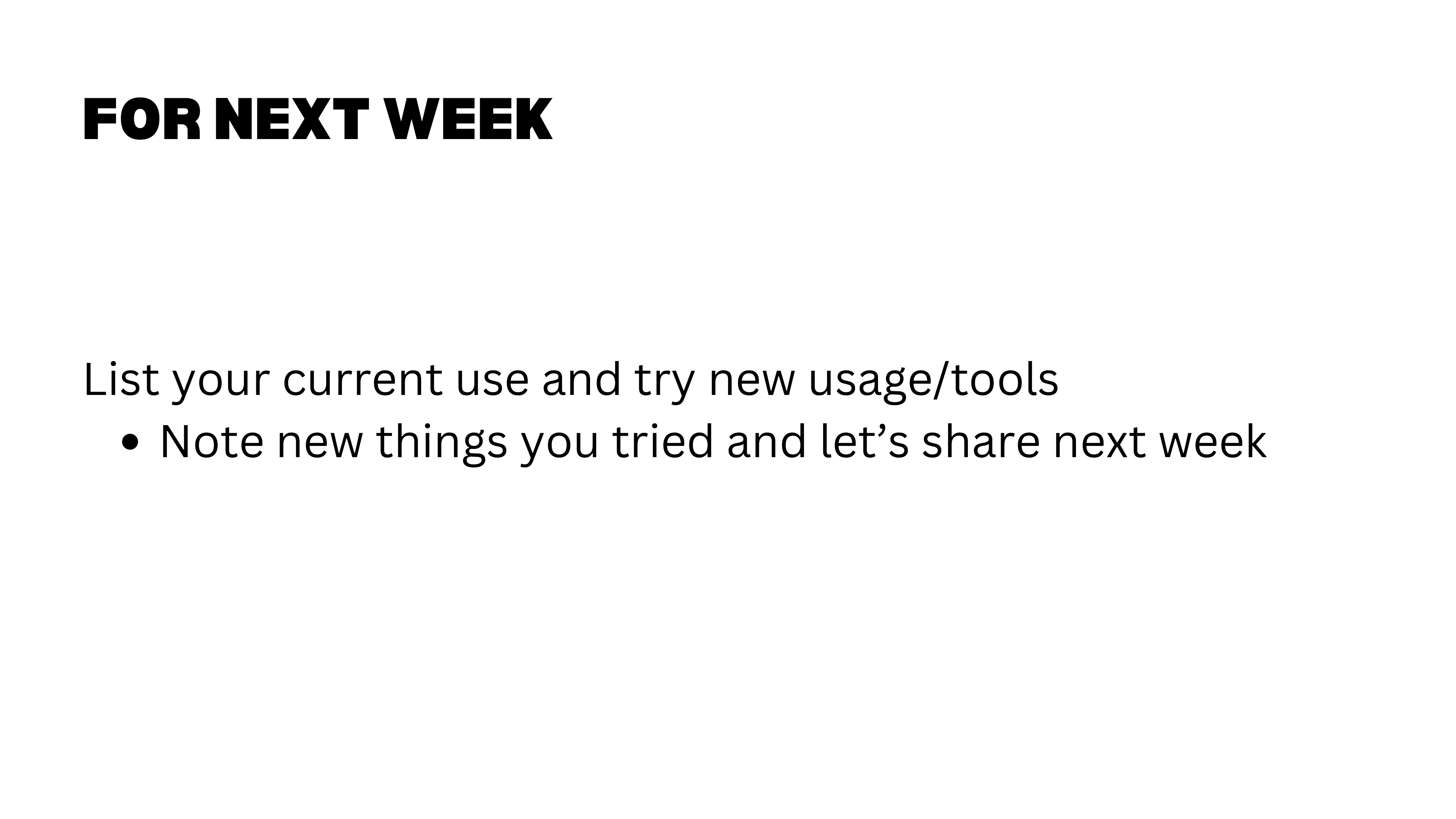 - Experiment with Claude — try something new this week and note what worked, what did not, and any new application ideas you discover.