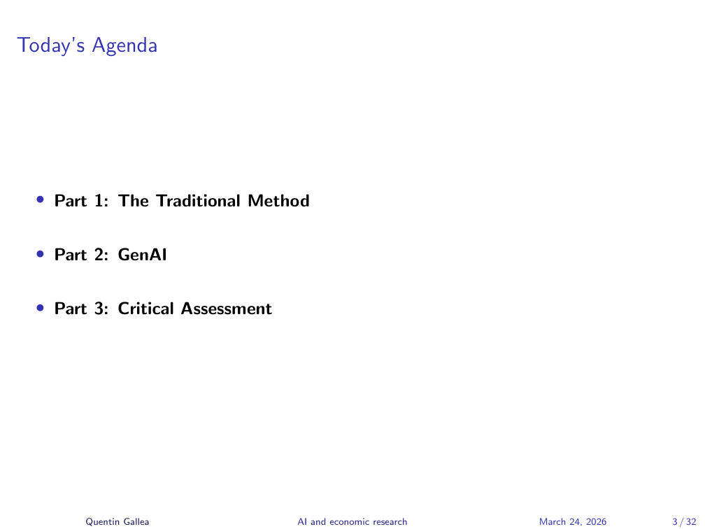 As usual: traditional method first, then how GenAI can play a role, then critical assessment.
