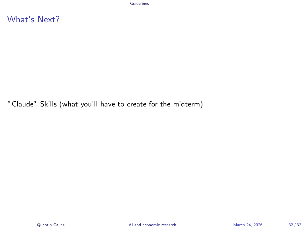 A note on the course: starting from this session, homework will involve working on your own topic of interest, building toward a master thesis proposal over the semester.